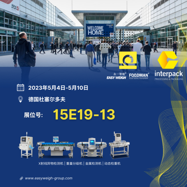 Interpack2023,永一智能邀您共襄盛举! 19 4 月, 2023 德国杜塞尔多夫包装展览会(Interpack)是世界上规模最大、影响力最强的包装展览会,是全球领先的包装和加工行业盛会。这个展会吸引了来自世界各地的行业领袖、专家和爱好者参加。我们广东永一智能是一家专注于动态检重机、重量分级机、金属检测机、X射线异物检测机和配重机等产品和服务的研发、制造和销售企业,将踊跃参与此次展会。展位号:15E19-13时间:2023年5月4日至5月10日地点:德国杜塞多夫 我们永一智能致力于为食品加工、精细化工、制药、物流等行业提供最优质的产品和服务。旗下全线设备采用先进的控制系统和自动化技术,能够快速、精准地完成各种称重、分选、异物检测工作,确保产品的质量和安全性。在此次展会中,我们将携最新的动态检重秤、重量分级机、金属检测机和X射线异物检测机等产品亮相,向客户和同行们分享我们的最新技术、解决方案和行业趋势,共同探讨各行业的未来发展方向。我们期待在展会上与您见面,探讨合作机会,共创美好未来! Prev上一篇永一智能Sino-Pack 2023,圆满结束! 下一篇儿童节专题-儿童食品&用品称重、异物检测解决方案Next 更多内容 立即咨询 我们将在24小时内联系您,其他联系方式>> 姓名 省市 电话 邮箱 公司 职务 产品(可多选) X射线异物检测机 金属检测机 动态检重机 重量分级机 留言 4+17 提交留言